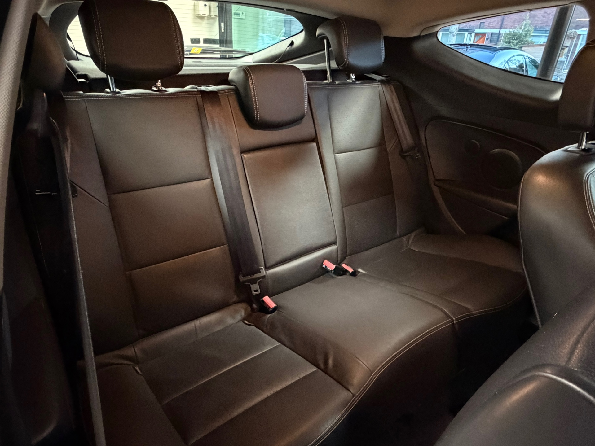 - Lederen bekleding met witte stiksels